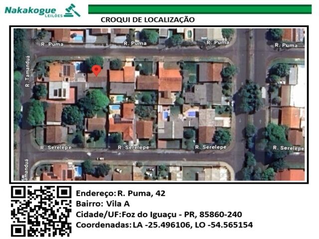 Item 55, Quadra 13, Lote 134, PUMA, RUA, nº 42, Terreno (m2) 432,78, Casa (m2) 83,70, Matricula 42421, Vila A1
